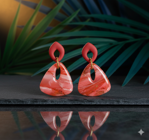 Handgemaakte oorbellen in warme rood- en oranjetinten, gecombineerd met speelse schakeringen die elk paar uniek maken. De organische vorm en levendige kleuren zorgen voor een frisse, opvallende look zonder zwaar aan te voelen.