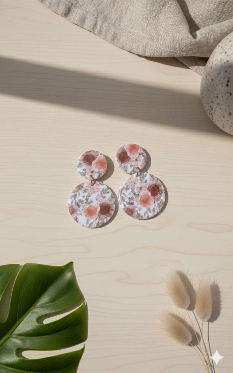 Deze elegante oorbellen met zachte rozenprint stralen romantiek en verfijning uit.