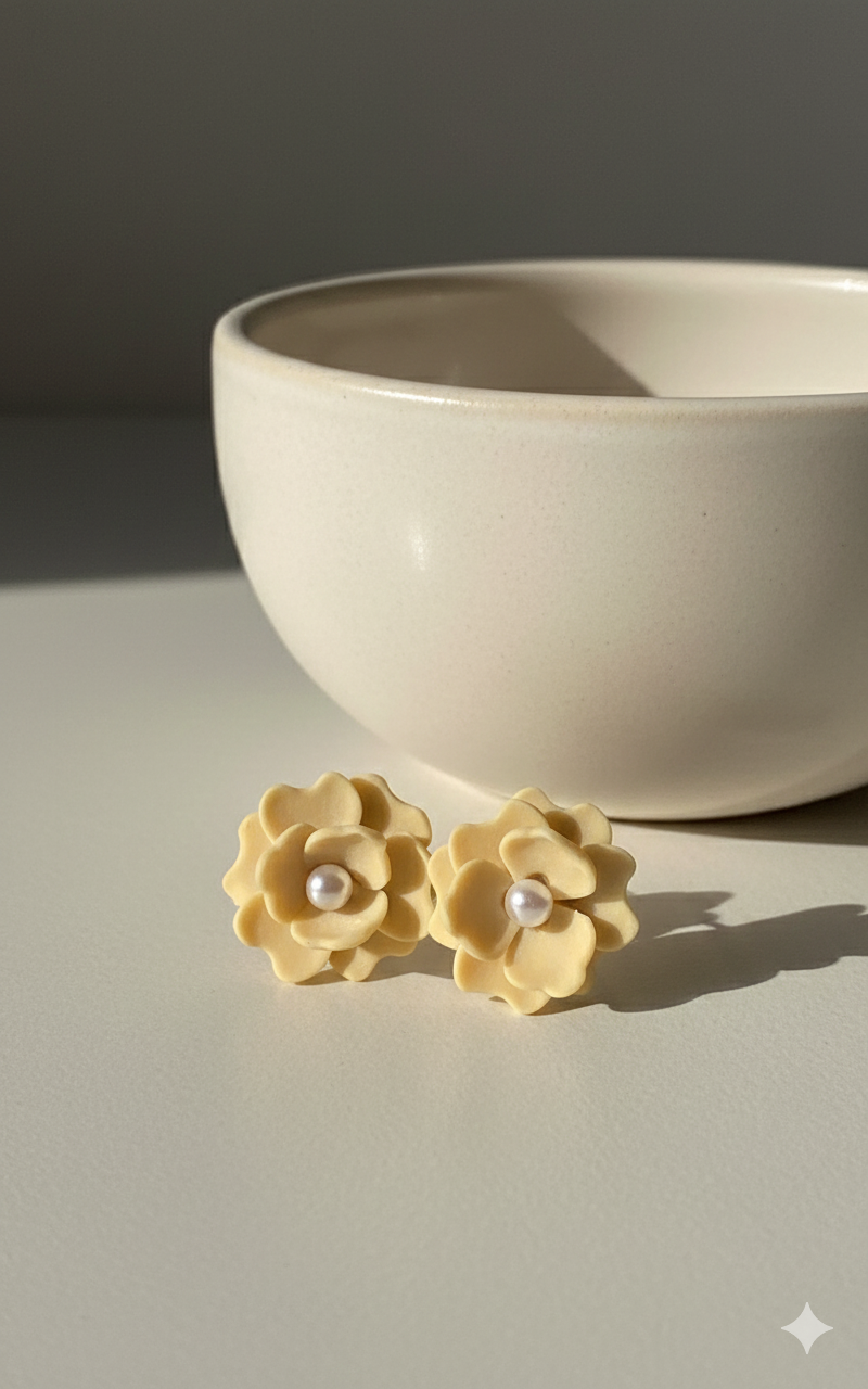 Fijne bloemvormige oorstekers in een zachte crèmekleur met een parelachtig detail in het midden. Elegant en romantisch, ideaal voor een subtiele look.