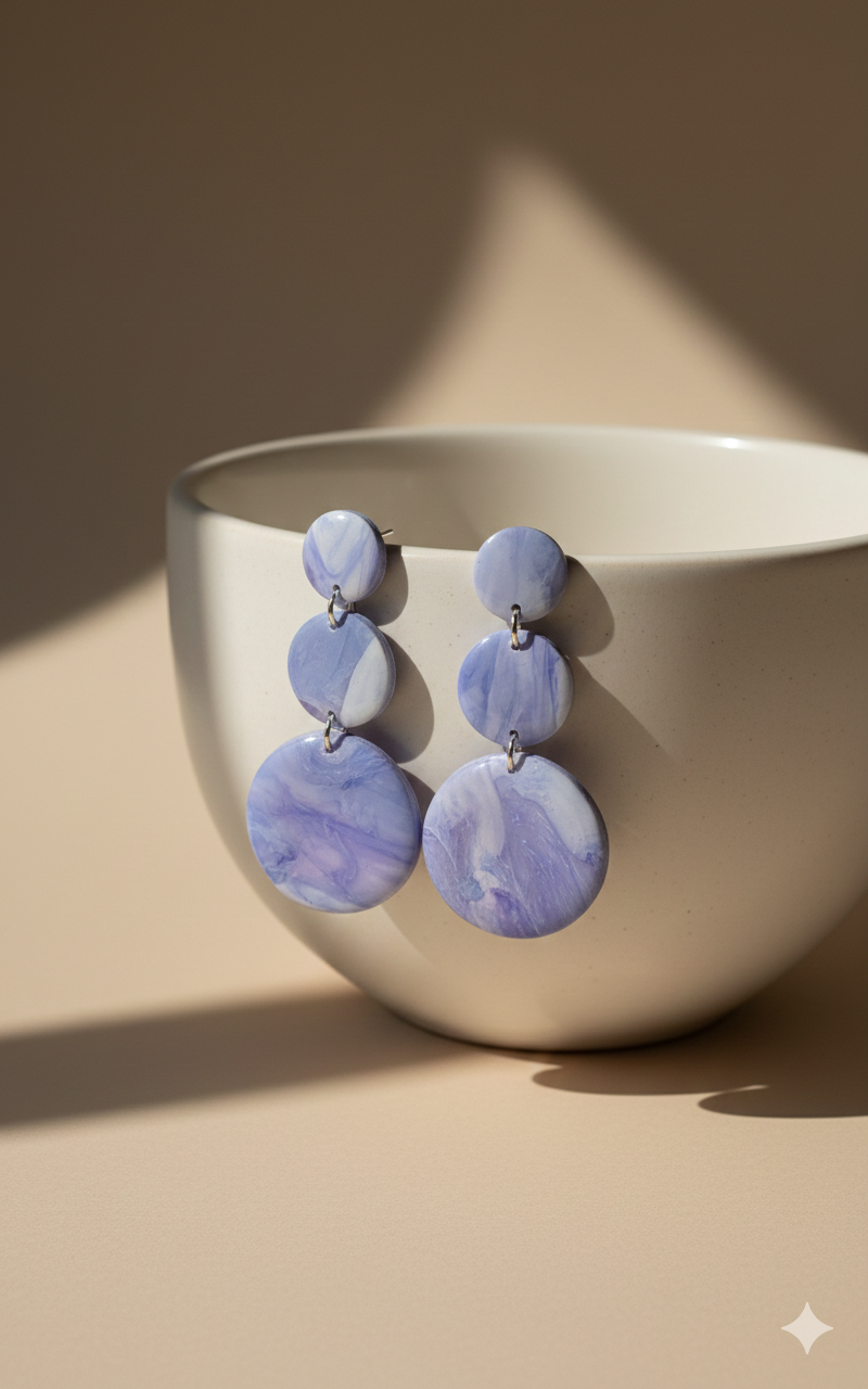 Zachte lavendel tinten met ronde vormen voor een romantische uitstraling.